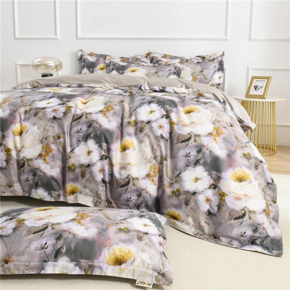 Queen Size Vintage Style Sheet Set Customized Digital Printed Duvet Cover Set 3D Flower Bedding Sets